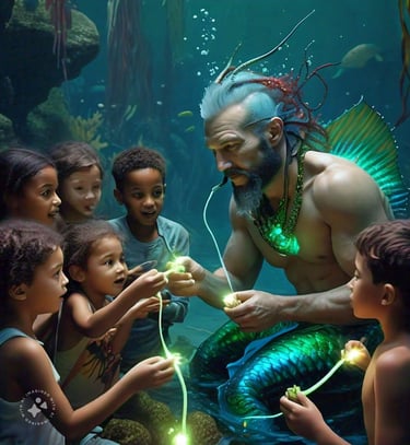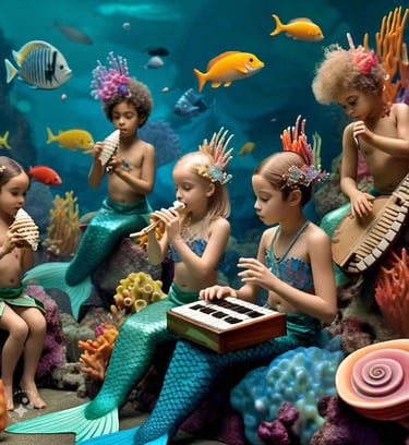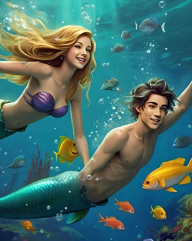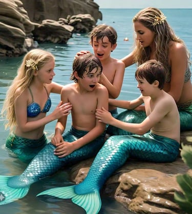 Image Idea: Merchildren swimming with dolphins or exploring underwater treasures.