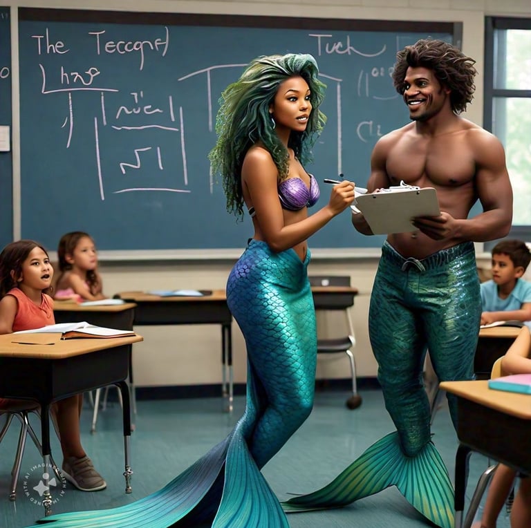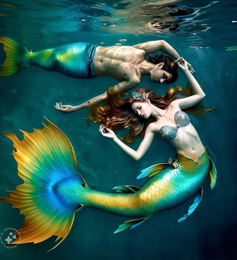 Image Idea: Adults with majestic merfolk tails, gazing out at the vast ocean.