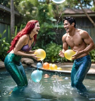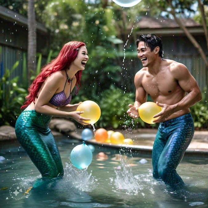 Merfolk Parade: Swim together in a line, showcasing new skills with flips, glides, and tail splashes. End with a group photo in the water.