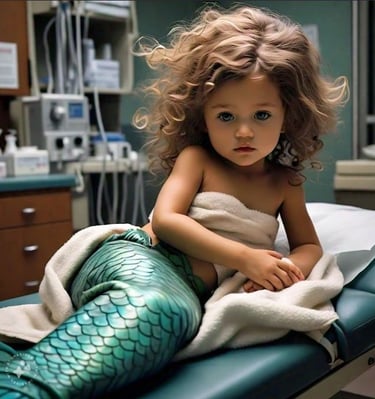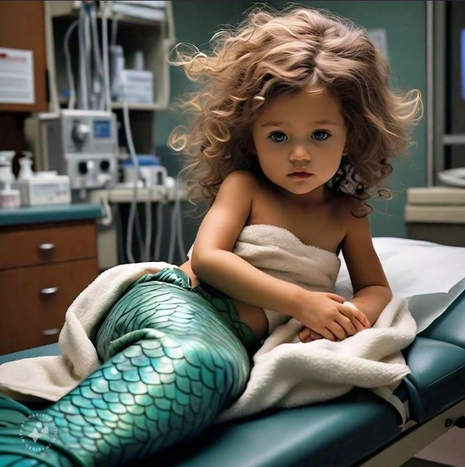 Daphne had one last wish. She wanted to be a mermaid while they were doing her tests at the hospital. We made her a nice mermaid tail and it helped her be calm. Thankfully, because she is no longer with us as our precious mermaid passed away two years ago.