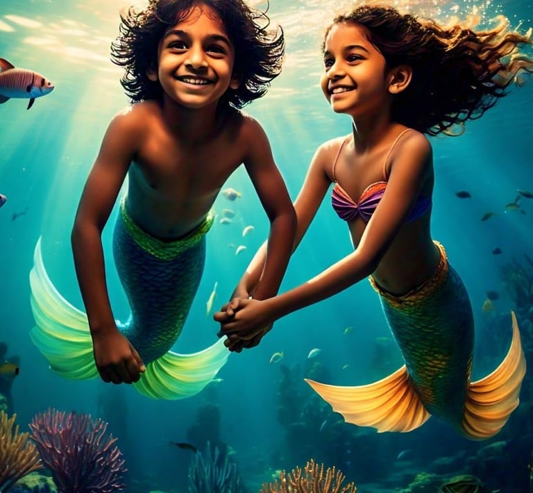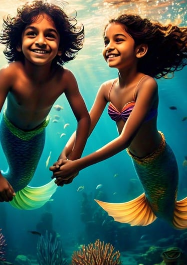 Image Idea: Merchildren swimming with dolphins or exploring underwater treasures.