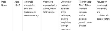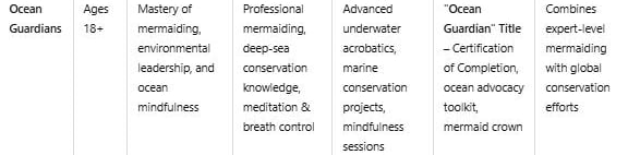 Mermaid Global University offers a structured yet immersive progression of mermaid programs designed for different age groups, ensuring an engaging and educational experience at every level.