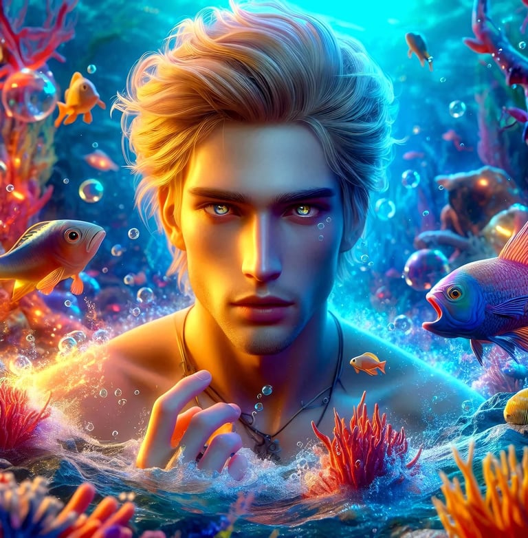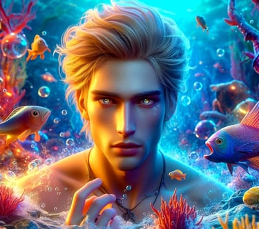 A merman is the male counterpart to the mermaid, a mythical being with the upper body of a man and the tail of a fish. Just like mermaids, mermen are deeply woven into oceanic folklore, often depicted as strong, wise, and sometimes mischievous guardians of the sea. They are frequently portrayed as protectors of the ocean, embodying bravery, mystery, and immense power.Mermen appear across countless legends and myths, each culture adding its own flair to their lore. While mermaids are sometimes associated with enchantment and allure, mermen are often seen as heroic or regal figuresβcommanding the waves, guiding lost sailors, and even possessing magical abilities, such as controlling the sea and communicating with marine life.