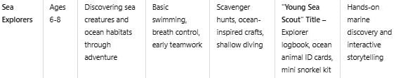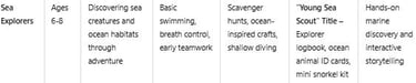 Whether a student begins at the entry level or joins at a later stage, each program provides unique lessons, interactive stories, and hands-on activities that build confidence, water skills, and a deep appreciation for the ocean.