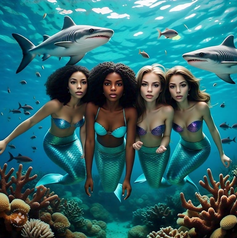 A mermaid is a mythical sea creature, typically depicted as a beautiful woman with the upper body of a human and the tail of a fish. Legends of mermaids have existed in various cultures for centuries, where they are often seen as mysterious, enchanting beings who live in the ocean. Known for their mesmerizing voices, mermaids are often associated with the power of song and enchantment, their melodies capable of captivating sailors and calling forth the magic of the sea.Mermaids are deeply connected to the ocean, symbolizing freedom, allure, and the untamed nature of the waters. They embody both mystery and adventure, often portrayed as guardians of the deep, explorers of hidden realms, or ethereal spirits guiding lost souls at sea.