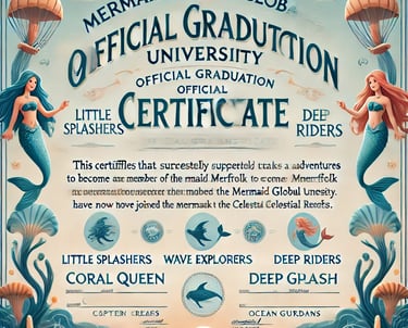 Upon completing all the activities in their program, participants will receive the Graduation Certificate in their age group, celebrating their journey and achievement of becoming an official member of the merfolk community in the Celestial Reefs. This certificate represents their dedication to learning, environmental stewardship, and personal growth within the merfolk world