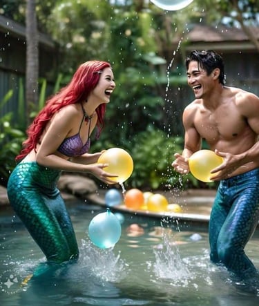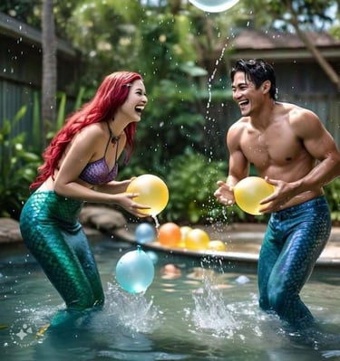 Merfolk Parade: Swim together in a line, showcasing new skills with flips, glides, and tail splashes. End with a group photo in the water.