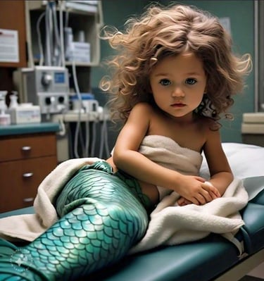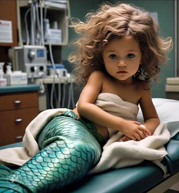 Daphne had one last wish. She wanted to be a mermaid while they were doing her tests at the hospital. We made her a nice mermaid tail and it helped her be calm. Thankfully, because she is no longer with us as our precious mermaid passed away two years ago.